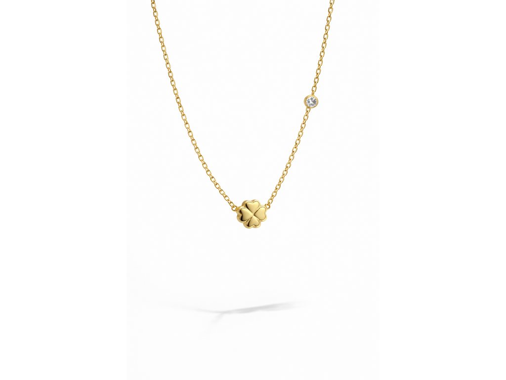 Tento dámský náhrdelník s motivem čtyřlístku představuje nadčasový symbol štěstí, ochrany a dobré energie. Jemně tvarovaný čtyřlístek v kombinaci s decentním kamínkem vytváří elegantní a moderní vzhled, který působí něžně a luxusně zároveň.