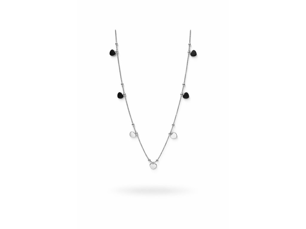 Tento dámský náhrdelník s motivem srdíček představuje symbol lásky, něhy a elegance. Jemně rozmístěné dekorativní prvky v podobě srdíček a kuliček vytvářejí lehký, moderní a velmi ženský vzhled, který působí decentně, ale zároveň originálně.