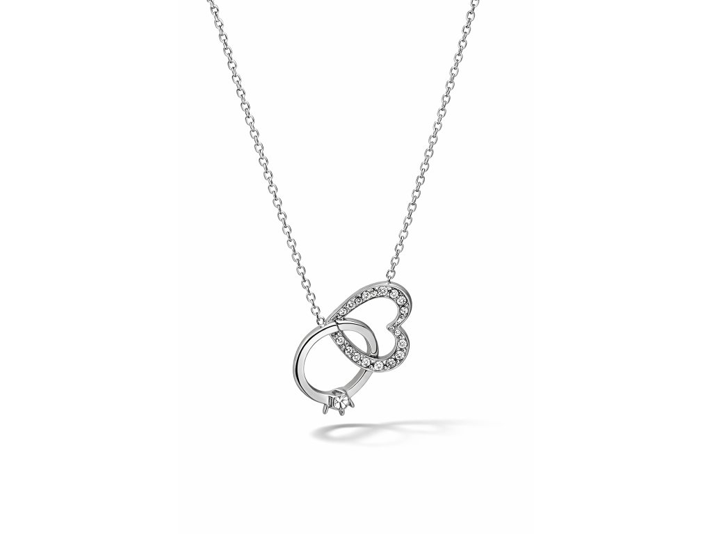 Tento jemný náhrdelník s motivem srdce a prstenu symbolizuje lásku, oddanost a spojení dvou lidí. Zirkony dodávají šperku decentní lesk a zvýrazňují jeho elegantní design.