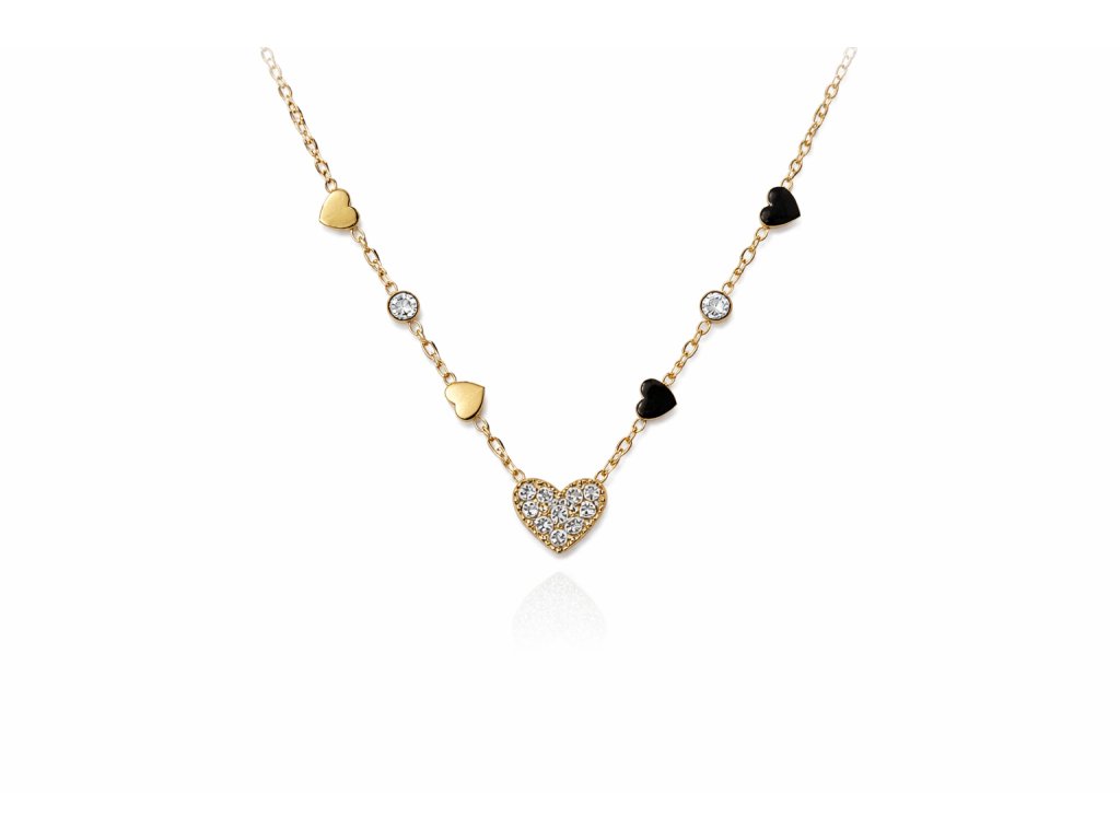 Tento elegantní zlatý se srdíčky je vyroben z kvalitní chirurgické oceli a zdoben čirými zirkony, které mu dodávají jemný lesk a romantický vzhled.