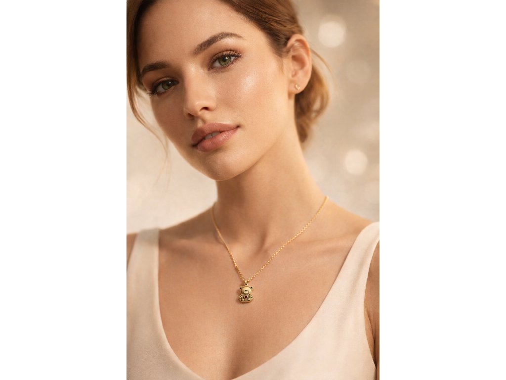 Tento jemný náhrdelník s roztomilým medvídkem a malým srdcem představuje symbol lásky, péče a citového pouta. Minimalistický, ale výrazně emotivní design z něj dělá šperk, který má osobní význam.