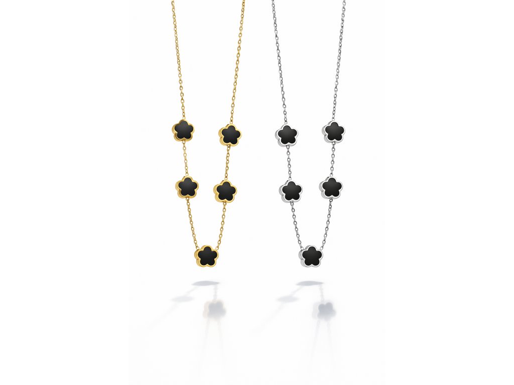 Tento stylový náhrdelník z kvalitní nerezové oceli je zdoben černými květinovými prvky, které dodávají šperku jemnou eleganci a moderní vzhled. Díky lehkému provedení je velmi pohodlný na nošení a snadno se kombinuje s dalšími šperky.