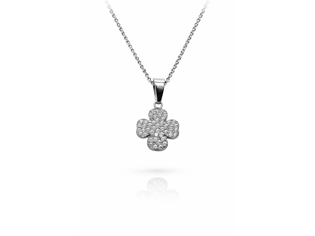 Tento elegantní dámský náhrdelník s motivem čtyřlístku symbolizuje štěstí, lásku a pozitivní energii. Přívěsek je vyroben z kvalitní chirurgické oceli a bohatě osazen třpytivými zirkony, které dodávají šperku luxusní a jemný vzhled.