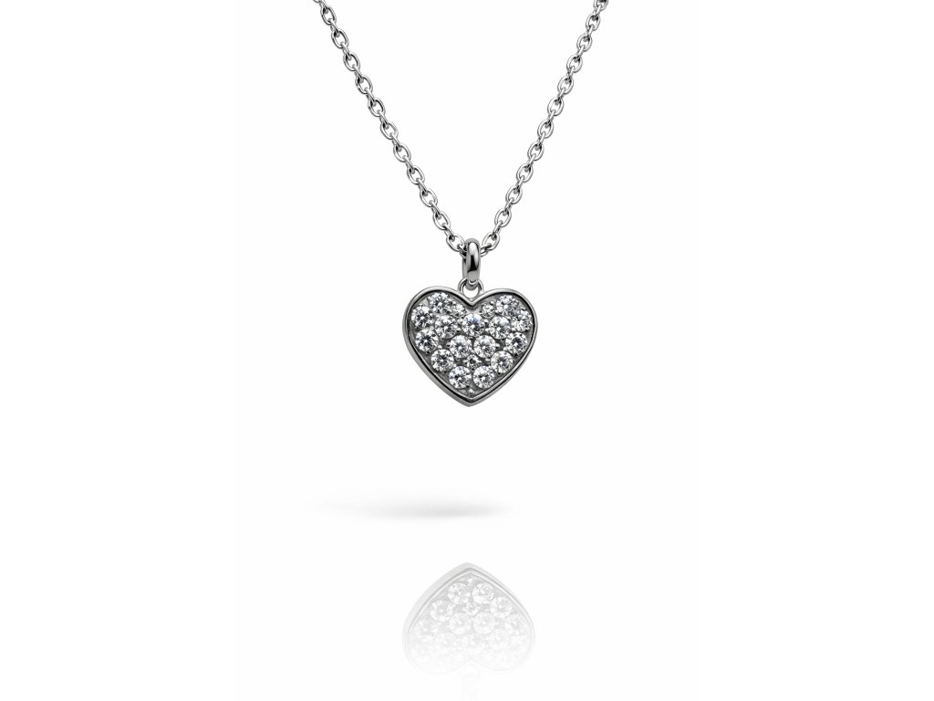 Tento jemný a elegantní náhrdelník se srdcem je nadčasovým symbolem lásky, něhy a emocí. Přívěsek ve tvaru srdce je vyroben z kvalitní chirurgické oceli a osazen množstvím čirých zirkonů, které krásně odrážejí světlo a dodávají šperku luxusní vzhled.