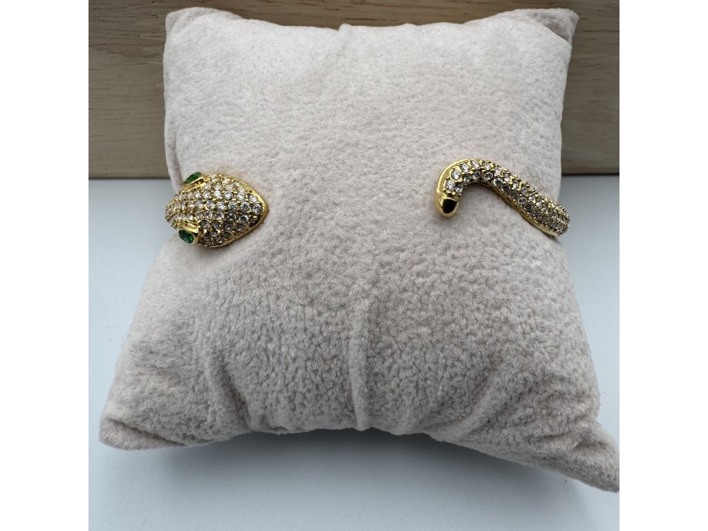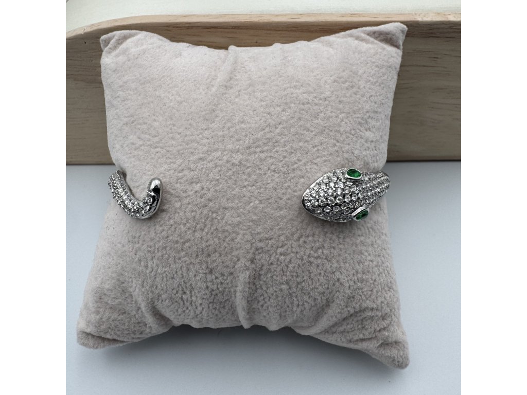 Tento náramek zaujme propracovaným hadím motivem, který symbolizuje sílu, eleganci a sebevědomí. Otevřený tvar umožňuje pohodlné nasazení i přizpůsobení zápěstí.