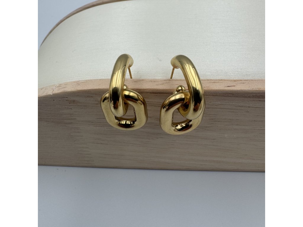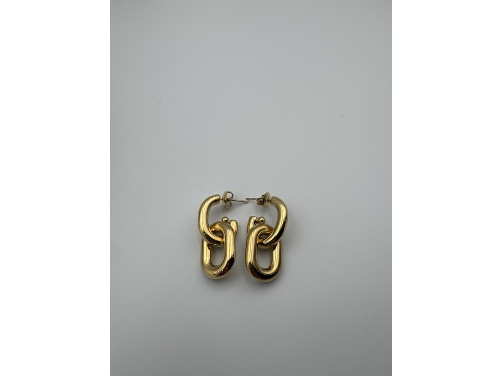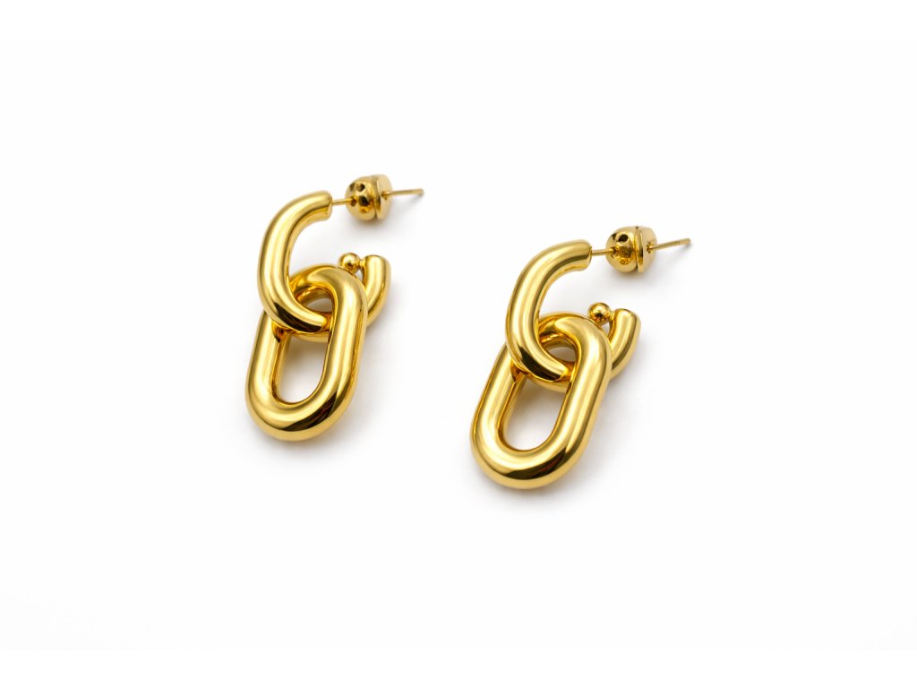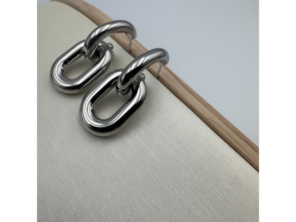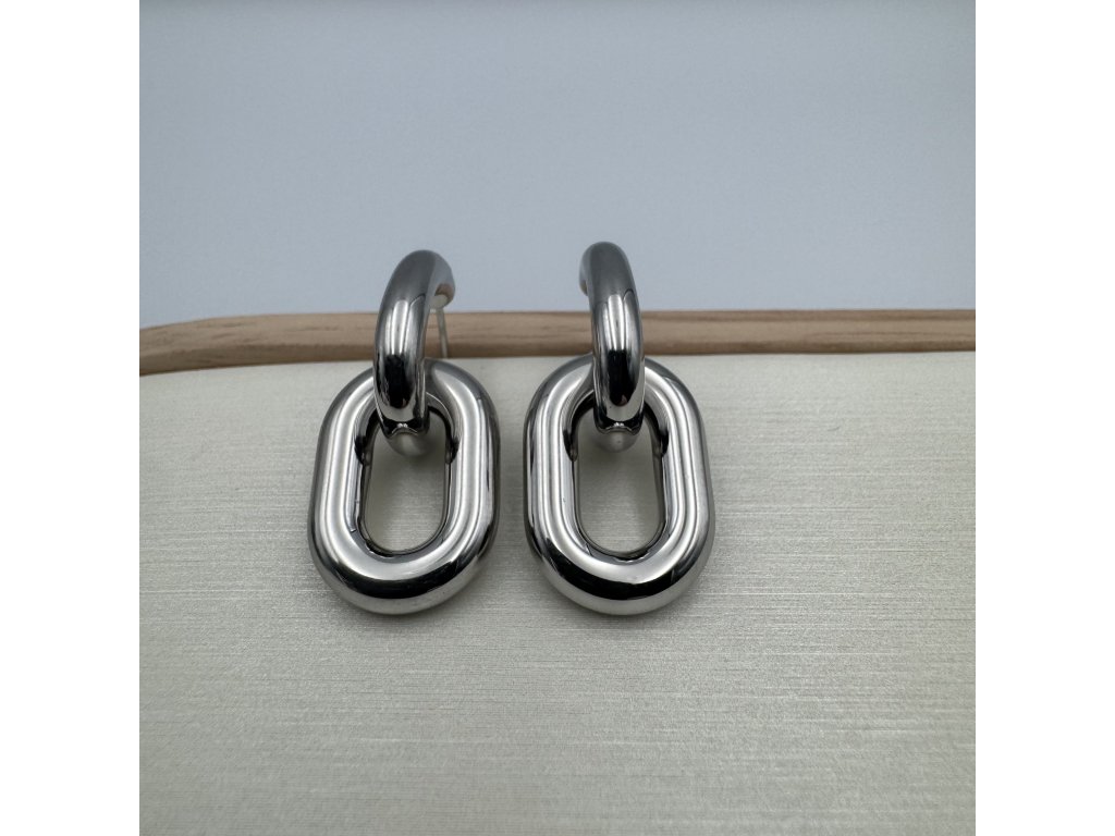 Tyto řetízkové náušnice vynikají originálním propojeným designem inspirovaným masivními články řetězu. Hladké, zaoblené linie působí luxusně a zároveň nadčasově. Díky pevnému zpracování a vyvážené velikosti jsou pohodlné na nošení a přirozeně přitahují pozornost.
